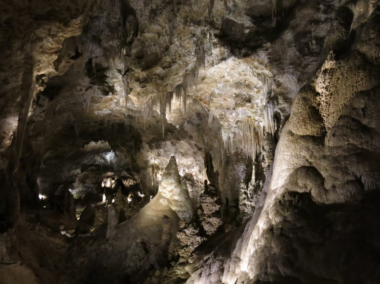 You have no feeling that below your feet are 119 caves, and to get to them you need to take an elevator bringing you 750 feet (229m) below the surface. There is a one-mile trail in the cave system open to the public, and the biggest cave (the Big Room) is almost 4,000 feet (1,220 m) long, 625 feet (191 m) wide, and 255 feet (78 m) high at its highest point, making it the fifth largest chamber in North America. It was hard to take any pictures down there, but the vastness of the cave, the darkness and feeling of being deep under ground was overwhelming. We have never been to such a big cave, and the rock formations, the stalagmites and stalactites were all imposing and extraordinary. Compared to the surface it’s cool down there, so bring some warm clothes.