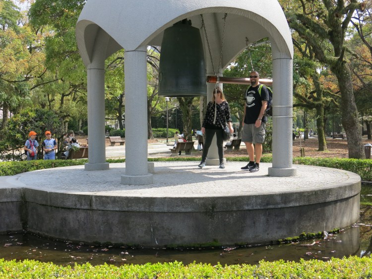 To get to the site itself was a powerful, almost overwhelming feeling. We have like all other world citizens, grown up with the tales and pictures from Hiroshima and Nagasaki. Both cities linked with the ultimate horrors of war. To see the Atomic Dome from the bridge across the river is soul crunching. Walking around the beautiful memorial park, with the cherry blossoms blowing like pink snow in the air, was something we will never forget. To walk past memorials, still with fresh flowers, there were ceremonies with wreaths being laid down still going on. At the children’s memorial a group of elderly women was being rolled in by wheelchairs to the monument, and they sat there crying, lamenting loss and pain for a full generation. Together we rang the peace gong on the grounds, hoping that history will not forget, that people will not forget, and that horrors like this will never be repeated. This experience was something beautiful, but also harrowing, and a place that should be seen by all that visit this area. Never have we been this close to world history, and felt it so raw.