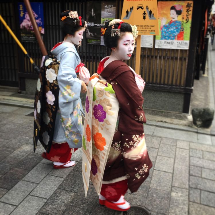 We had a cool walk through some residential areas, before entering the bus taking us back to the Kyoto old town area and the Yasaka-Jinka shrine which overlooks the Gion entertainment district and is the venue for the city’s biggest annual festival, the Gion Matsuri. Considered to be the spiritual heart of Kyoto, this is the place to come if you want to see what role the Shinto religion plays in the life of locals. People flock here for weddings; we saw several wedding parties hustling for the best photo op on the stairs of the temple. Newborn babies get blessed, there are prayers for love and success, and there are food stalls, picknick benches and all around a good vibe. Just your everyday gaily painted shrine, a great place for people watching. After visiting the shrine, it’s just a walk across the road and you are in the Gion district.