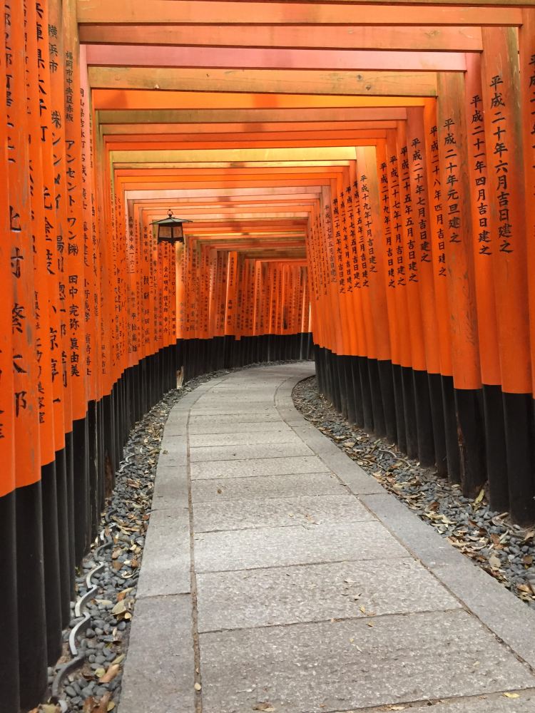 The shrine actually has a good website where you can find out how to get there (by train from city central) – there is a greeting from the head priest and general info. The place itself is one of the most iconic Japanese places, and you will see a photo of the torii gates in any brochure about Japan. The enshrined deity of Inari Okami was put on this site at 711AD, and the shrine itself celebrated its 1300th anniversary in the year 2011. We arrived at sunrise, to have most of the complex alone. Just a few intrepid tourists like us had made that early trek. And it was pure adventure to walk along the hallways made up of thousands of torii gates lining the paths up the mountain. There are 5 shrines and around a thousand torii gates donated by families and businesses for good fortunes. We walked the paths, we witnessed the head priest on his morning walk, and before the major influx of tourists came, we felt very peaceful. If you want to read up more about the shrine itself and the meaning of the Inari, please do – it’s quite fascinating.