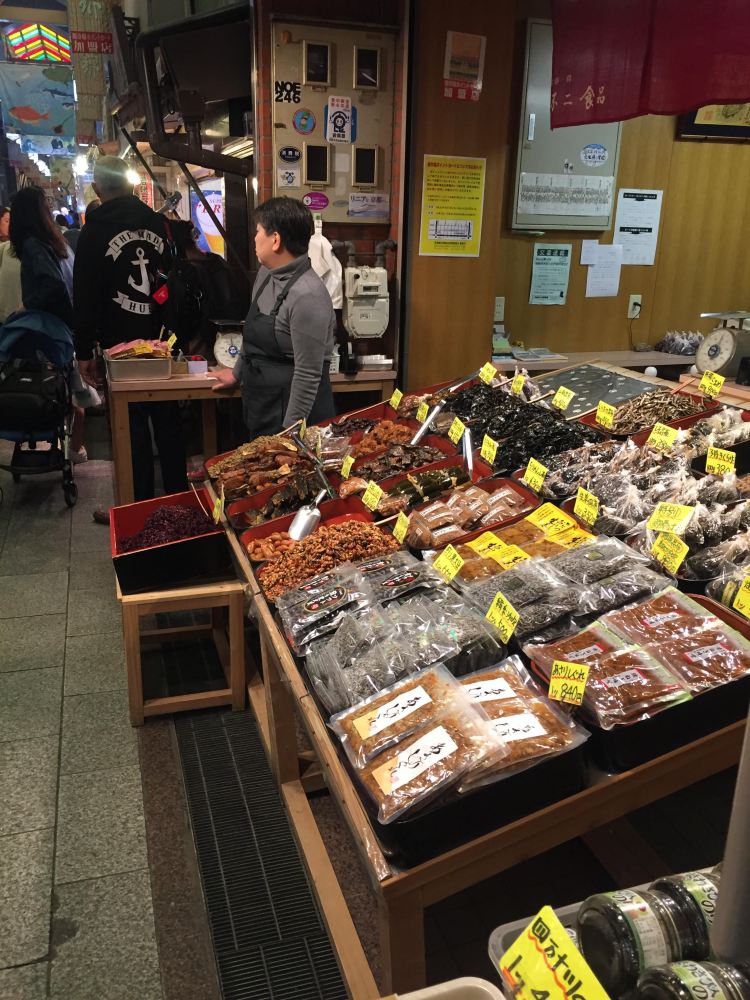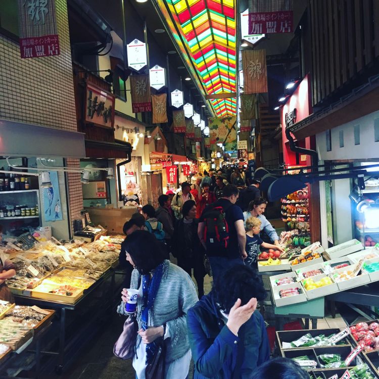 The afternoon and evening were spent at the Nishiki Market in central Kyoto. A narrow five block long shopping street lined by more than a hundred shops and restaurants. It’s known as Kyoto’s kitchen, and there is everything from fresh seafood, to knives, cookware and Kyoto specialities such as dried seafood and sweets. Just walking the market, stopping for small treats along the way, getting free samples and buying a proper Japanese knife to slay your own sushi when you get home, is very cool. Almost everything sold in the marked is locally produced. Just one note, and that goes for the whole of Japan: it is considered bad manners to walk while eating. So, stand still, or sit down for your meal or samples. We ended up at a local izakaya again and had fried gristles and cows’ stomach in cabbage for dinner.
