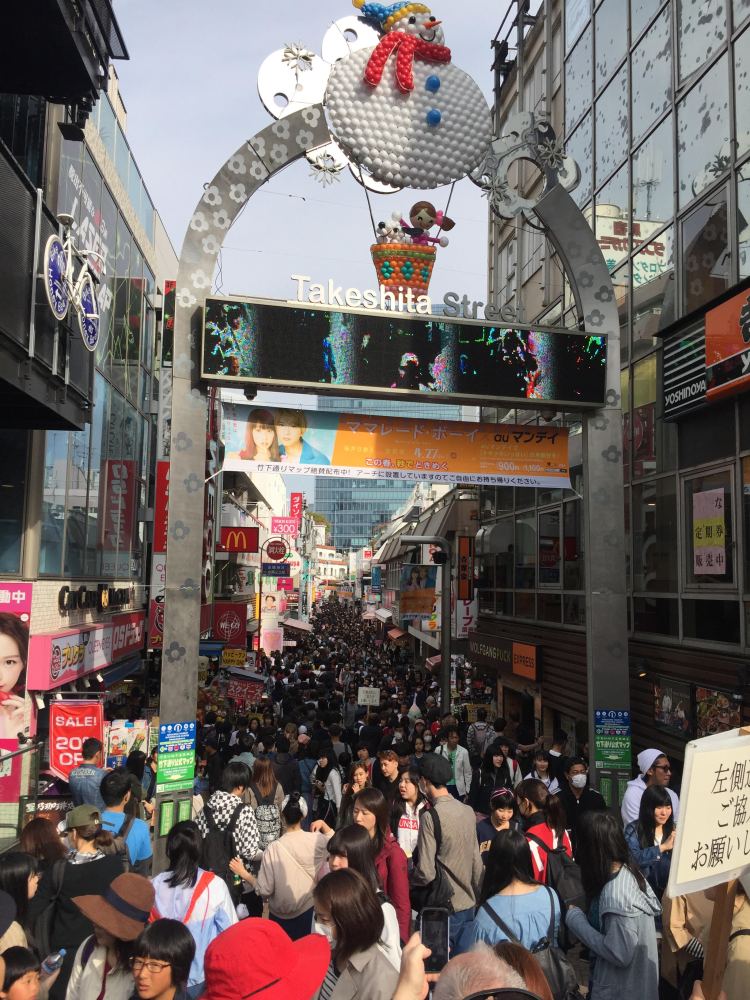 Its not a too long stroll from Shibuya to Harajuku. If you do the walk, then you should do the Cat Street, running between the two parts of the city. It’s hipster’s paradise, with lots of shops, cafes and smaller places that sell whatever you don’t need. From Shibuya you walk the Meiji-dori avenue north, and you will encounter the start of the street on the right, you will see the golden egg. Keep walking up the street, it will split up into smaller parallel streets, with lots of cool small shops. And it you keep heading up the hill, you will eventually be in Harajuku. Harajuku refers to the area around the Harajuku station, which is between Shinjuku and Shibuya on the Yamanote line. It’s the centre of all that is extreme in the Japanese youth culture, fashion and styles. It offers bonkers shopping, the people watching is epic. If you can find a place to sit and gawk at all the craziness walking by, this is the place to do it. It’s the sort of place you must experience. The Harajuku girls have been the topic of songs, movies and cartoons. This is cosplay central, and Tokyo’s centre of kawaii, the culture of cuteness in Japan. The whole area was mayhem when we visited, on a Saturday afternoon. Thousands of youth cramming the streets, the underground station was so full that no one seemed to be able to move, not getting in and not getting out. Everyone seemed to accept this, and just kept standing, making it a hive of pink and purple hair and the odd mohawk. We basically gave up, and opted to walk to the nearest station north of there, together with hundreds of other people, who got the same idea. One of the most bonkers “only in Japan” moments on our trip.