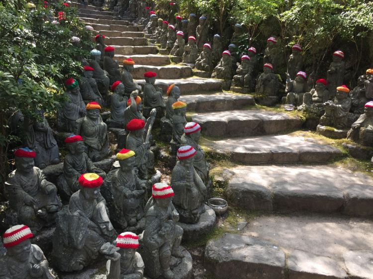 Next morning we got up bright an early and made our way by ropeway up to the top of mount Misen. At 500 meters above sea level, it gives a commanding view of the sea and inland beyond. There are several Buddhist structures near the peak. You can walk up the whole way, there are 3 hiking trails, but for us the walk from the ropeway all the way up to the top was good enough, it was a way from the cable car exit to the top itself. When at the top, we found out that there were several cool sites along the trail to the bottom, so we decided to walk all the way down again. We ended up having several peaceful sit-downs in shrines all alone, just looking at the effigies, pictures and feeling a peaceful spirit filling our souls. The way down was long, but worth it. The views from the decent were spectacular.