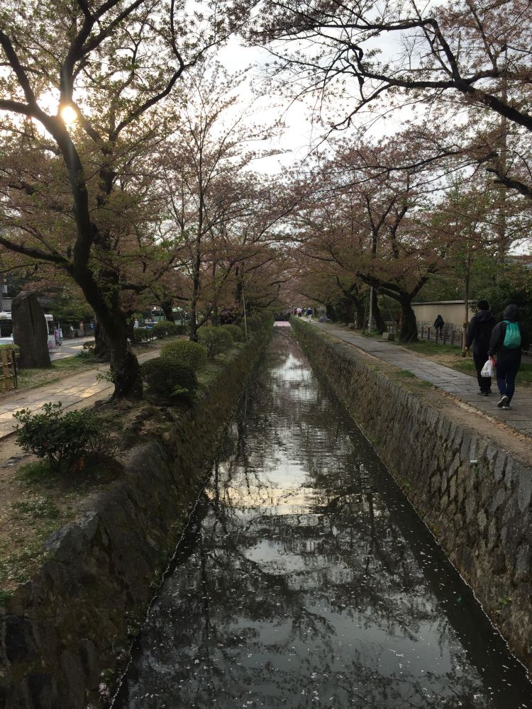 Bullet train from Himeji to Kyto, just a few hours, and you arrive in what is one of the best-preserved Japanese cities, due to not being bombed like so many other cities, in WW2. Kyoto is considered the cultural capital of Japan, and a major tourist destination. It has a plethora of Buddhist temples, Shinto shrines, palaces and gardens. On arrival we checked in to our hotel in downtown Kyoto, and got a bus to the Philosopher’s Path that runs between Ginkakuji and Nanzenji temples in the northern part of the Higashiyama district. It’s known to be THE place to see the cherry blossoms along the canal, it’s the city’s main hanami (cherry blossom viewing) spot. Unfortunately we came a week late for the blossoms, and the trees were bare, so even though the walk was nice, we are sure it’s spectacular when the hundreds of trees are pink and white with flowers. Still the 2 kilometres long walk was a nice experience, with temples dotting the route, and small coffee and tea houses along the way.