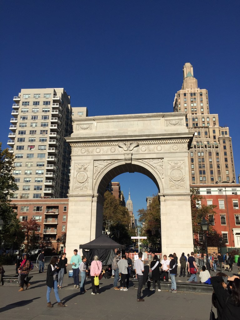 We would suggest walking as far as Washington Square park, our favourite small park in New York. The south western corner is occupied by chess hustlers. Keep walking into the square in the middle of the park and look at the Washington Square Arch and the view through the arch up 5th Avenue. The arch has been used in movies and in the intro for the Friends sitcom series.