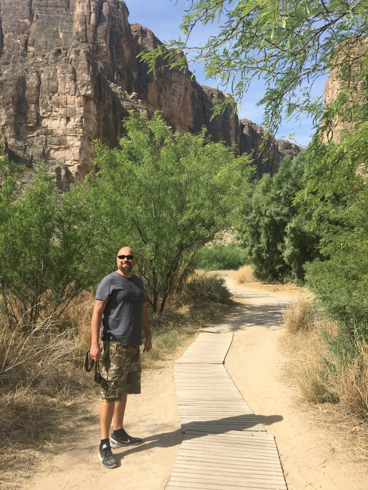On the border with Texas this is a huge park, the drive into and out of the park takes hours, literally. So, plan your visit well, you could easily spend a week here, or you could as we did, take a scenic drive and choose one of the canyons as a walk. We drove the Maxwell scenic drive to Santa Elena Canyon, and did the trek into the canyon. It’s a relatively easy trek, a bit of a climb up the stairs and into the canyon from Rio Grande, but well worth the effort to get into the cool shade of the steep canyon walls.